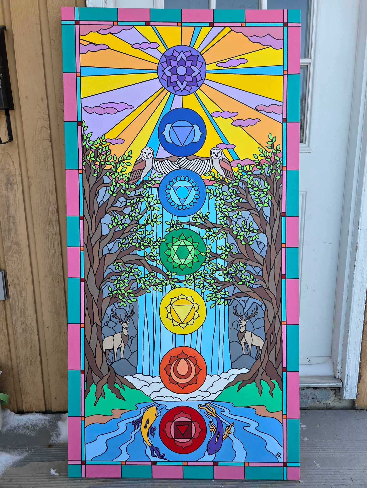 Original painting on 60x30 canvas. Medium is acrylic and posca with an archival spray varnish overtop.